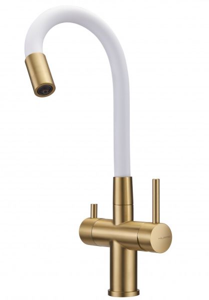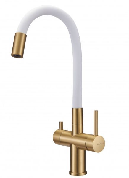 Смеситель для кухни Milacio Ultra MCU.560.GDW под фильтр с краном для питьевой воды и гибким изливом золото/белый купить