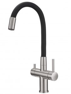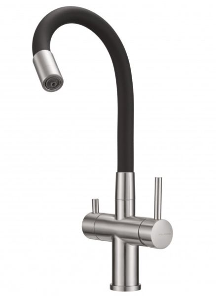 Модель выполнена в цвете нержавеющей стали и имеет изящный излив черного цвета, благодаря чему станет яркой, привлекающей внимание деталью на кухне и никого не оставит равнодушным.