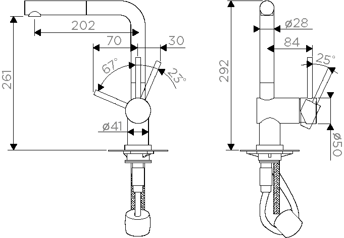 • Высота смесителя: