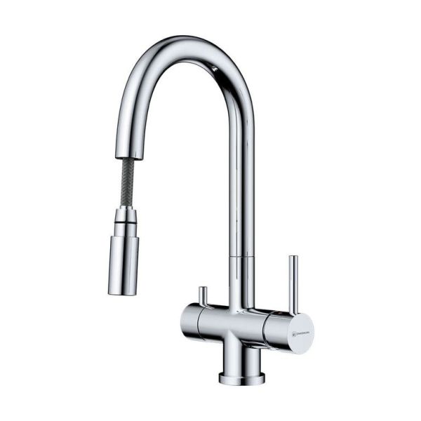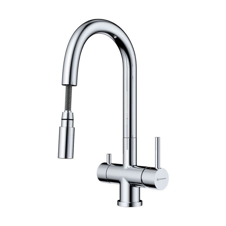 Кухонный смеситель под фильтр Omoikiri AKITA-S-СПервый смеситель OMOIKIRI в категории 3 в 1: функция подачи холодной/горячей воды, возможность подключения фильтров для очистки и наличие вытяжного шланга. Фильтрованная вода подается по отдельной трубке и не смешивается с водопроводной водой. Благодаря используемому материалу известковые отложения и ржавчина на смесителе исключены, а небольшой налет, возникающий при эксплуатации легко удаляется при помощи мягкой губки. Полный набор креплений и соединительных шлангов, а также подробная инструкция позволят без видимых усилий установить смеситель.Контроль качества.Смесители OMOIKIRI проходят через систему тестов, включающую в себя: