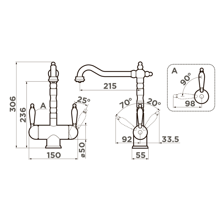 • Классический дизайн и удобство использования благодаря высокому изливу.