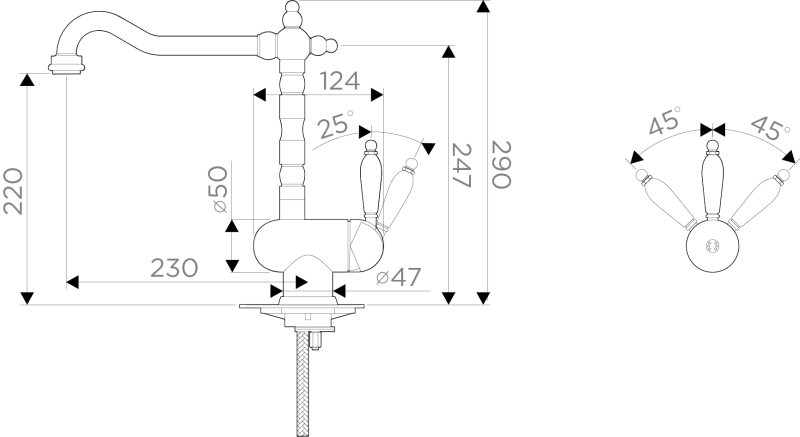 • Классический дизайн и удобство использования, благодаря высокому изливу; • Цвет: 005.Золото; • Высококачественная латунь сохранит воду чистой и здоровой; • Аэратор произведен из пластика, благодаря чему на нем никогда не появится известкового налета и ржавчины; • Коробка внутри проложена поролоном, который обеспечит сохранность изделия при транспортировке; • Полный набор креплений, соединительных шлангов, подробная инструкция и гарантийный талон в комплекте;