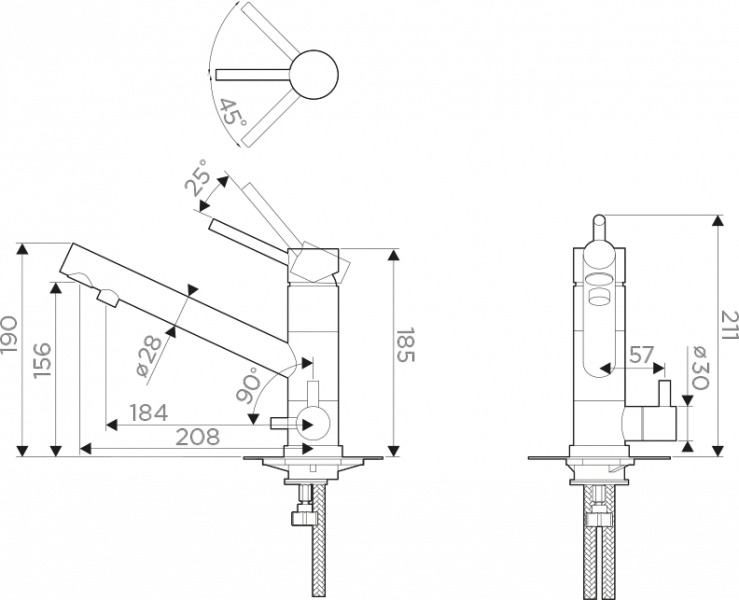 • Гибкий излив: