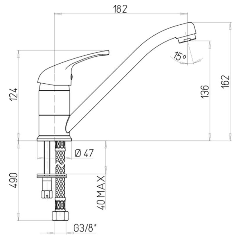 • Высота смесителя: