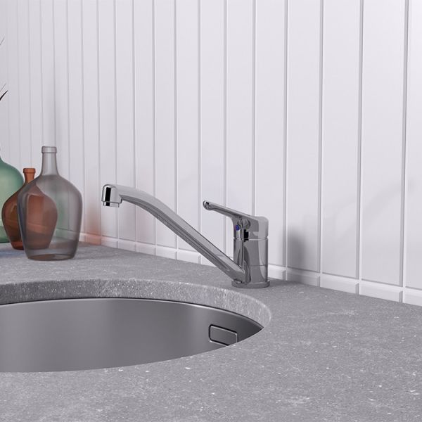 Однорычажный смеситель для кухни PILOT, несмотря на компактные габариты, обладает всеми необходимыми функциями, благодаря чему стал популярным в своей ценовой категории. Поворотный излив позволяет менять направление струи, а большая ручка смесителя, расположенная сверху, позволяет включить воду запястьем или локтем, если руки испачканы.
