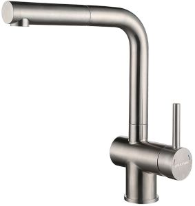 Смеситель для кухни с выдвижным шлангом, артикул Do214418-SSИзготовлен из нержавеющей стали AISI 304. Нержавеющая сталь AISI 304 легирована никелем, марганцем, медью и хромом, что обеспечивает ей повышенную прочность и устойчивость в коррозионных средах, такая сталь не подвержена деформациям.Вытяжной шланг