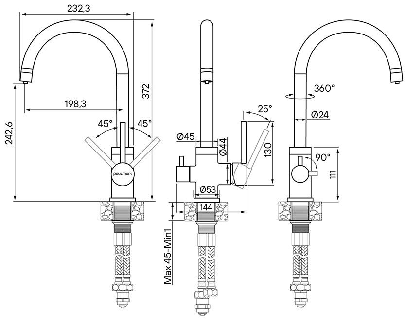 • Высота смесителя: