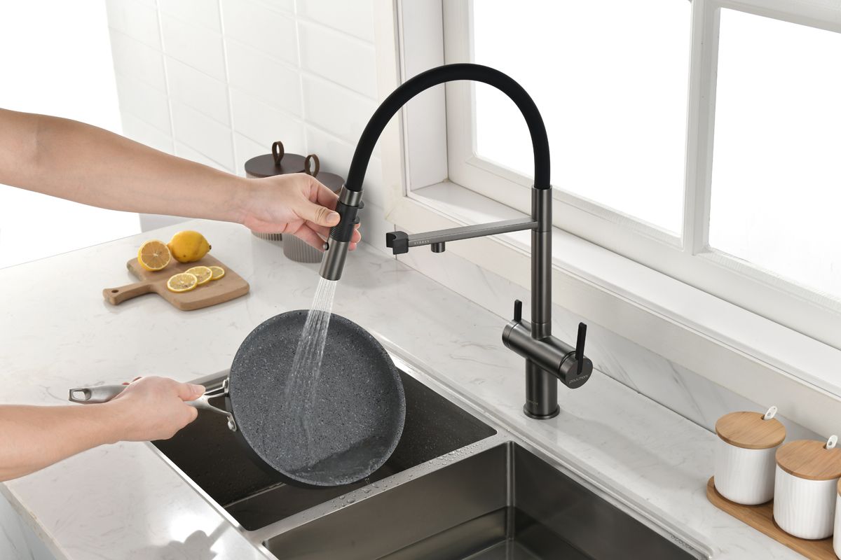 Смеситель для кухни, под фильтр, с гибким изливом, артикул Gr213188-BВходит в премиальную серию кухонных смесителей STÄRKE.