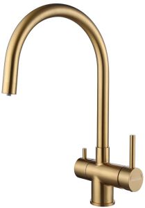 Смеситель для кухни, с возможностью подключения фильтра питьевой воды, артикул He213218-BGИзготовлен из нержавеющей стали AISI 304. Нержавеющая сталь AISI 304 легирована никелем, марганцем, медью и хромом, что обеспечивает ей повышенную прочность и устойчивость в коррозионных средах, такая сталь подвержена деформациям.