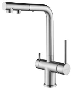 Смеситель для кухни с выдвижным изливом и возможностью подключения фильтра питьевой воды, артикул Se213222-NIИзготовлен из высококачественной латуни, которая отвечает высочайшим европейским стандартам качества, не содержит свинца, не разрушается со временем и безопасна для здоровья.Смеситель для кухонной мойки SERPENTINE изготовлен из высококачественной латуни в классическом дизайне с изливом Г-образной формы. Излив поворотный на 180. Высота излива – 330 мм.
