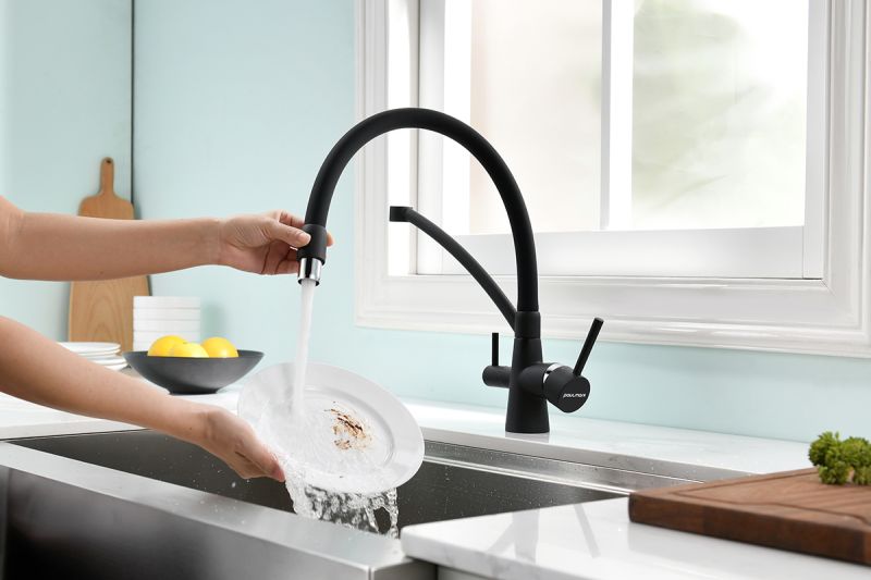Смеситель под фильтр с гибким изливом, артикул Si213111-401TBСмеситель для кухни однорычажный, с возможностью подключения фильтра питьевой воды, эластичный излив, керамический картридж 35 мм.Материал корпуса - латунь высокого качества. Многослойное, стойкое к истиранию покрытие. Долговечный керамический картридж диаметром 35 мм. Эластичный излив. Съемный пластиковый аэратор, который обеспечивает мягкую струю, ровный и экономичный поток воды. Простой монтаж, стандартное подключение.