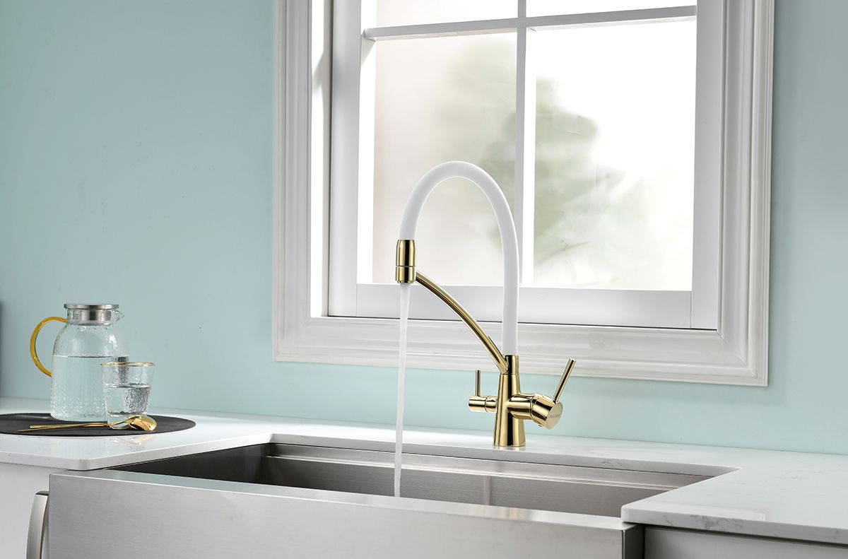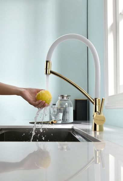 Смеситель под фильтр с гибким изливом, артикул Si213111-GwСмеситель для кухни однорычажный, с возможностью подключения фильтра питьевой воды, эластичный излив, керамический картридж 35 мм.Материал корпуса - латунь высокого качества. Многослойное, стойкое к истиранию покрытие. Долговечный керамический картридж диаметром 35 мм. Эластичный излив. Съемный пластиковый аэратор, который обеспечивает мягкую струю, ровный и экономичный поток воды. Простой монтаж, стандартное подключение.