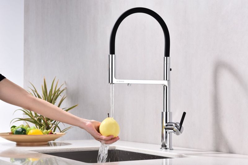 Смеситель для кухни, с гибким изливом, артикул To213402-CRИзготовлен из высококачественной латуни, которая отвечает высочайшим европейским стандартам качества, не содержит свинца, не разрушается со временем и безопасна для здоровья.Гибкая подводка 40 см;