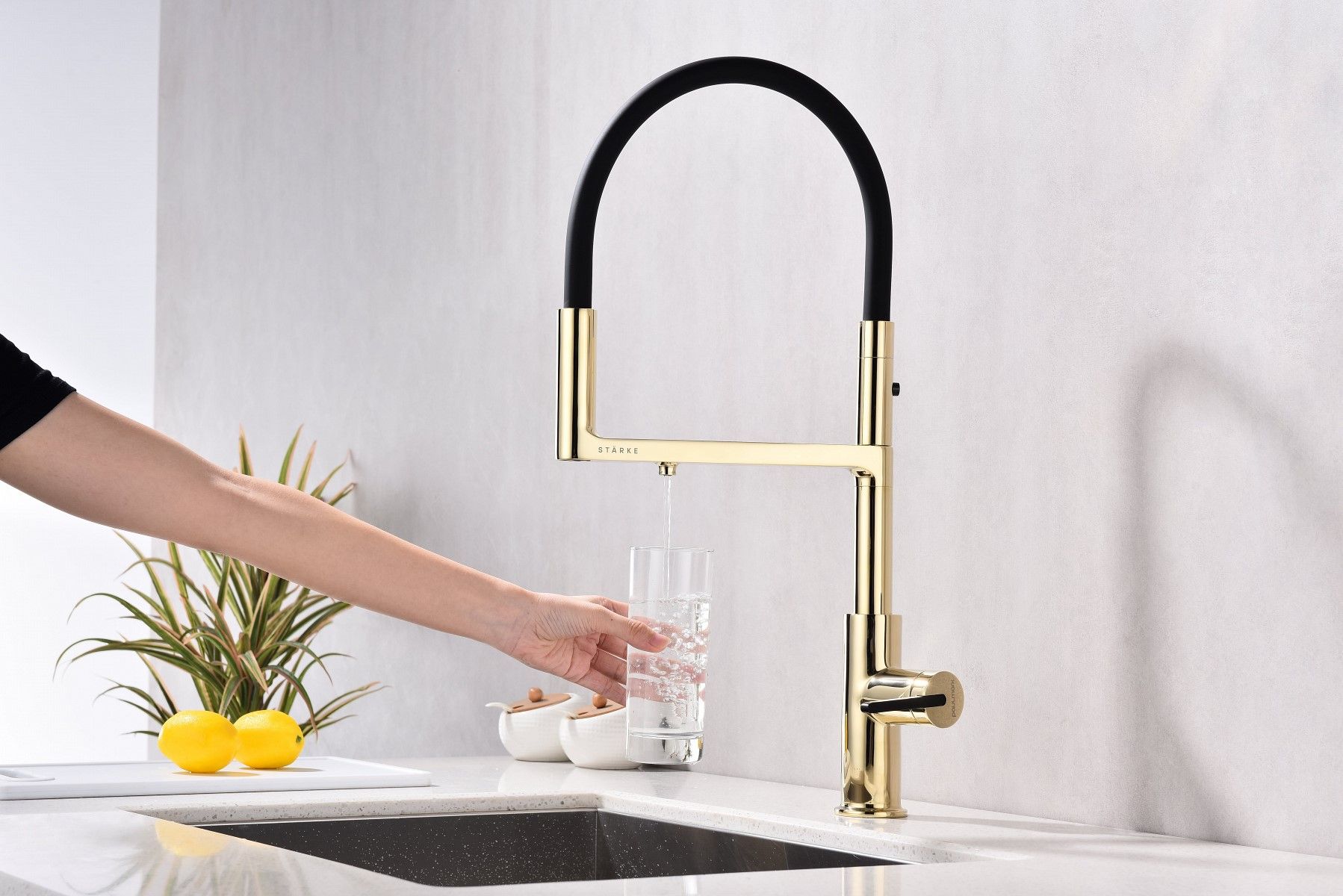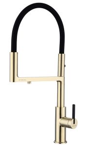 Смеситель для кухни, с гибким изливом, артикул To213402-GИзготовлен из высококачественной латуни, которая отвечает высочайшим европейским стандартам качества, не содержит свинца, не разрушается со временем и безопасна для здоровья.Гибкая подводка 40 см;