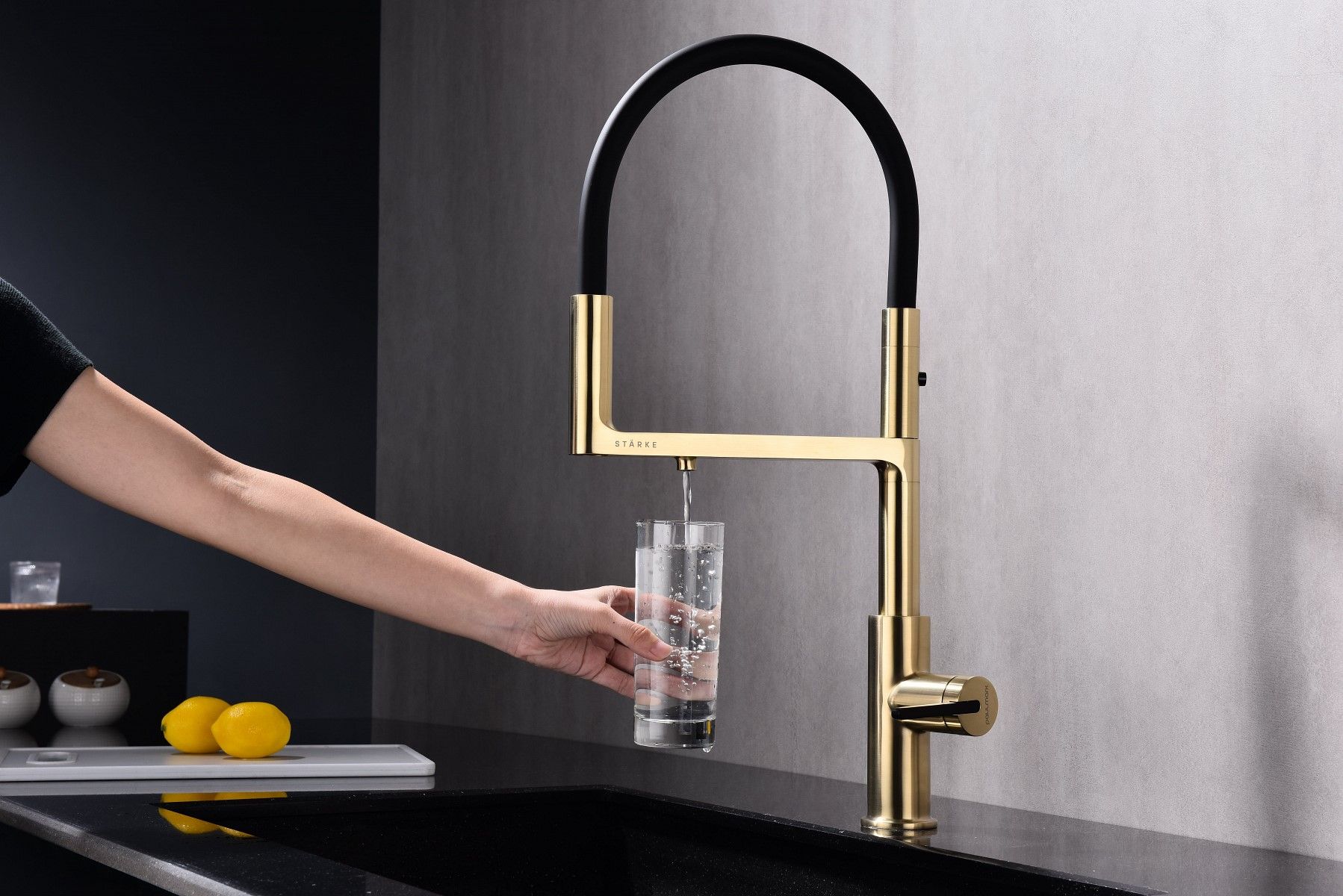 Смеситель для кухни Paulmark Tornado To213402-SBG светлое брашированное золото купить