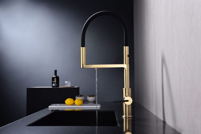 Смеситель для кухни, с гибким изливом, артикул To213402-SBGИзготовлен из высококачественной латуни, которая отвечает высочайшим европейским стандартам качества, не содержит свинца, не разрушается со временем и безопасна для здоровья.Гибкая подводка 40 см;