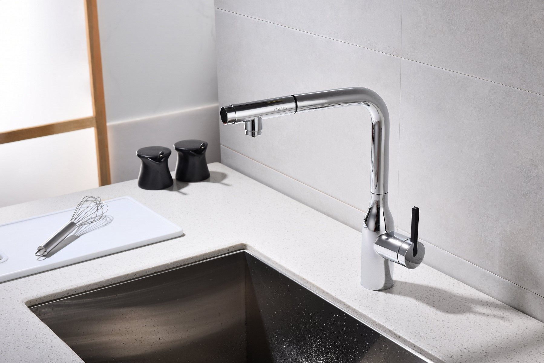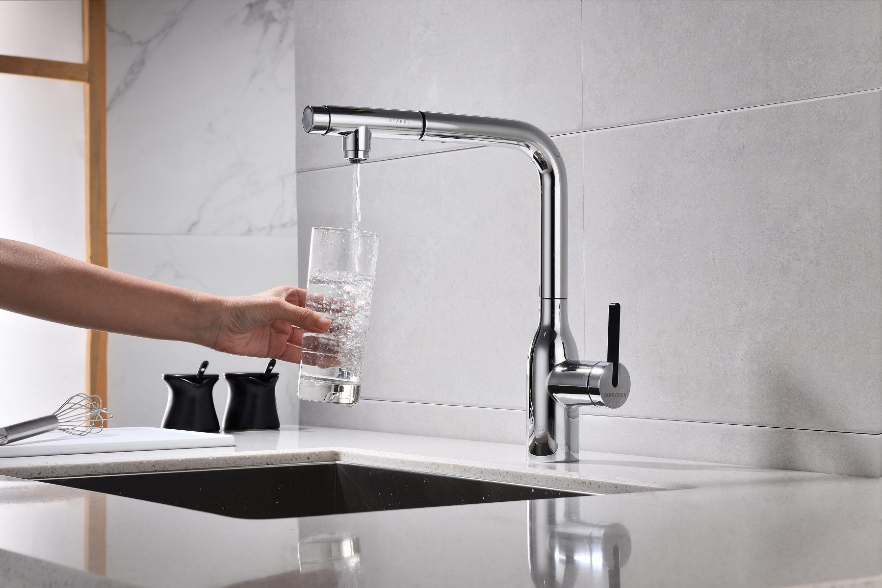 Смеситель VIPER имеет отдельный канал для питьевой воды. Переключение режимов осуществляется с помощью удобной и эргономично расположенной кнопки. Благодаря такому функционалу, потоки воды не смешиваются, а переключение осуществляется максимально комфортно.