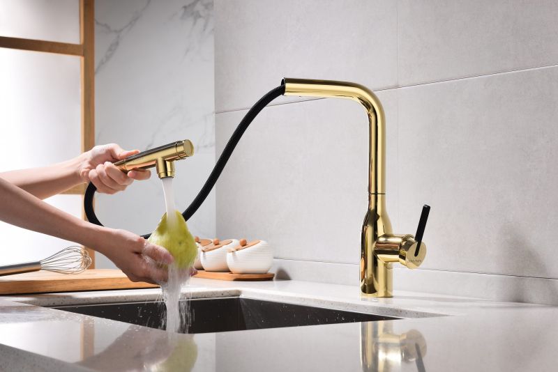 Высокий Г-образный излив с функцией вращения на 360 градусов обеспечивает удобство использования. Выдвижная часть излива способна обеспечить максимально комфортную эксплуатацию и экономный расход воды.