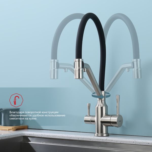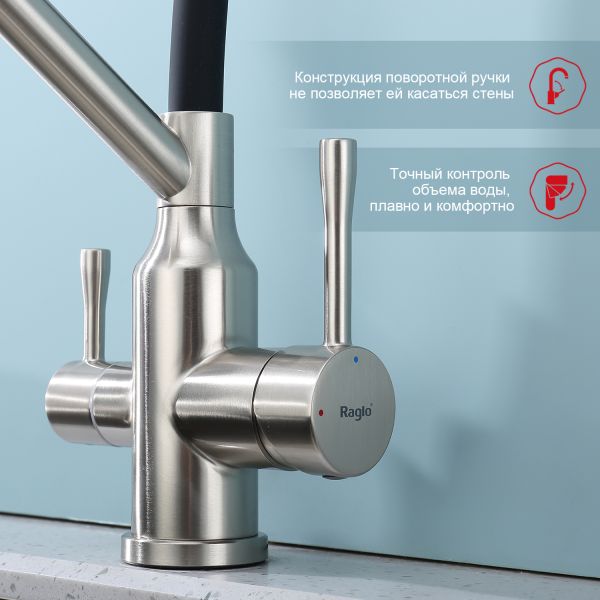 Смеситель для кухни Raglo R81.62.05 с подключением фильтра сатин