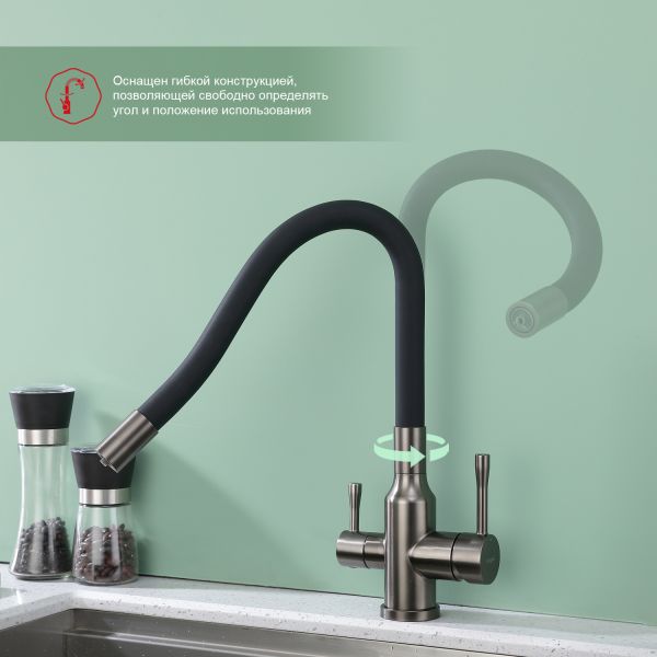 Смеситель для кухни Raglo R81.64.09 с подключением фильтра графит