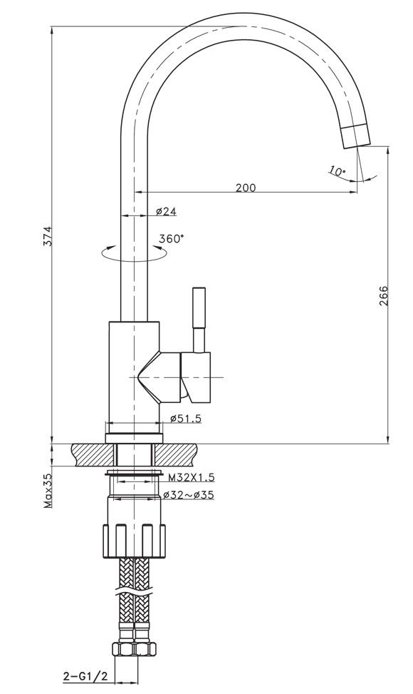 RP-012, цвет хромСмеситель латунный, 2 шт гибкие подводки , картридж 35мм