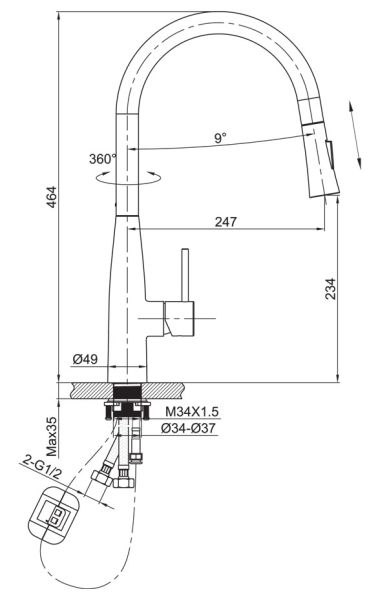 • Высота смесителя: