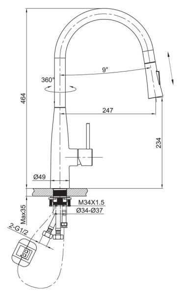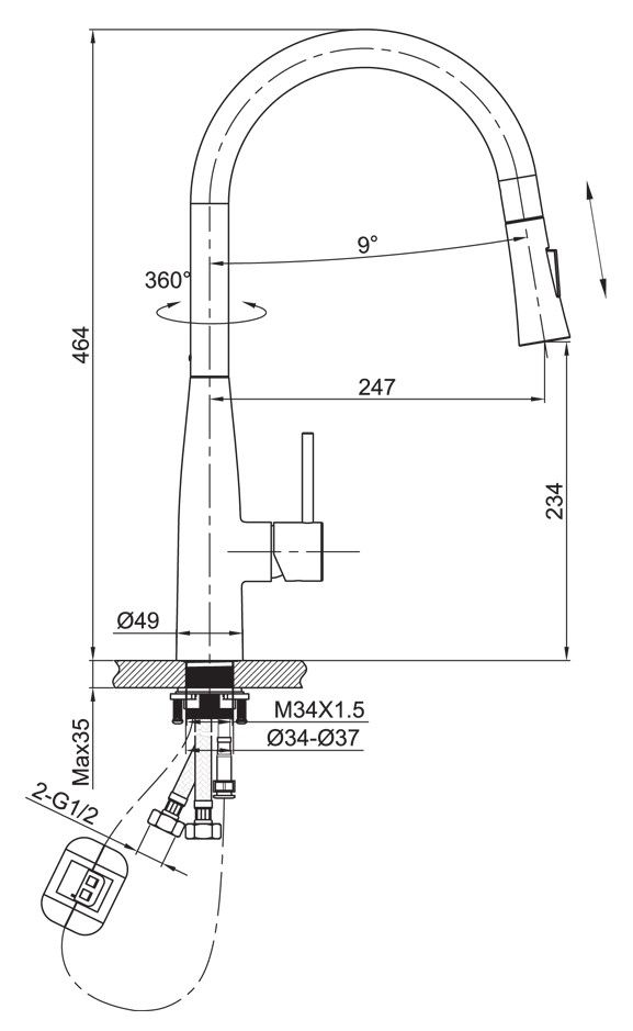 шланг 150см, распылительная головка, покрытие матовое золото 3 слоя (специальная технология)