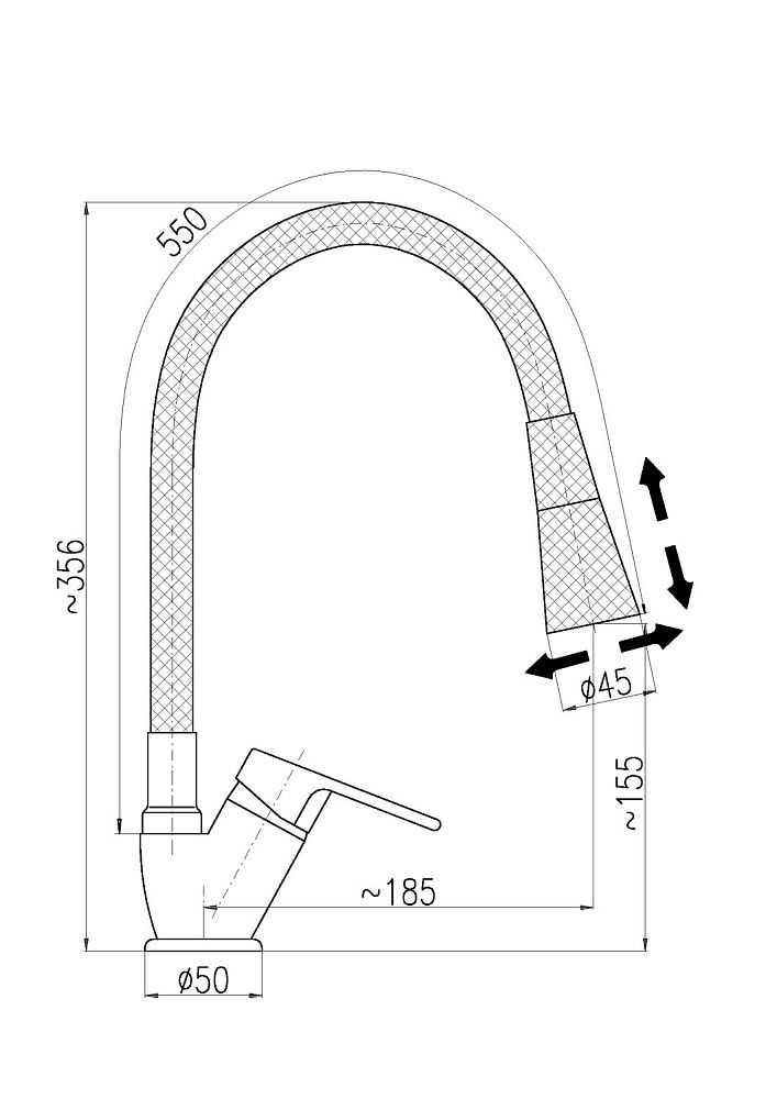 • Гибкий излив:
