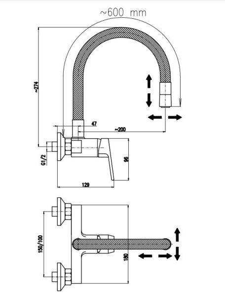 • Гибкий излив: