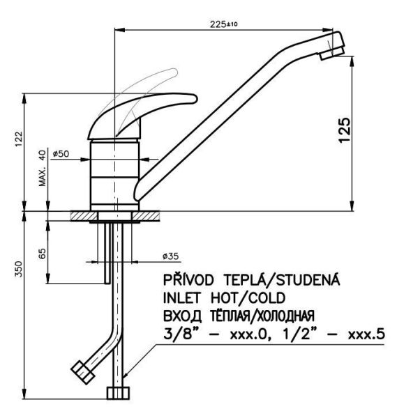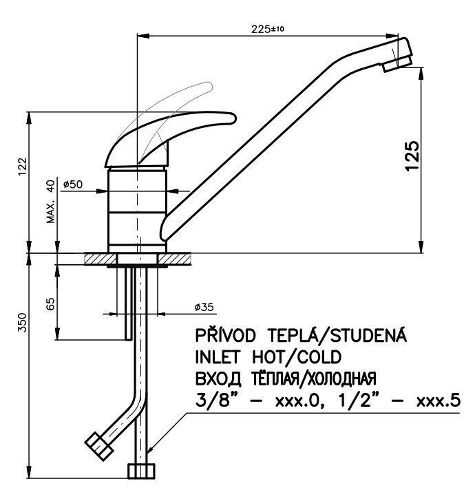 • Высота смесителя: