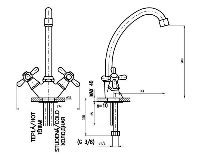 • Высота смесителя: