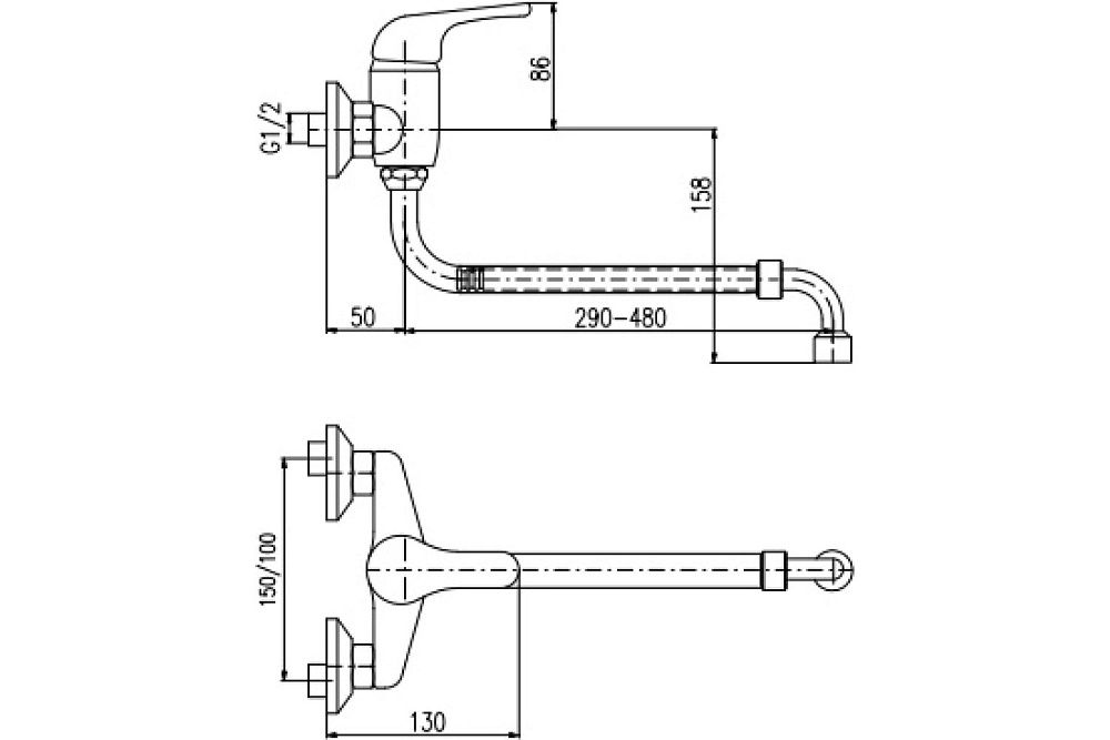• Высота смесителя: