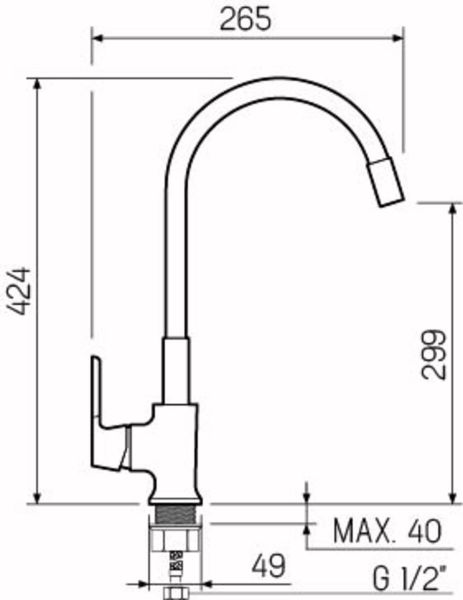 • Высота смесителя: