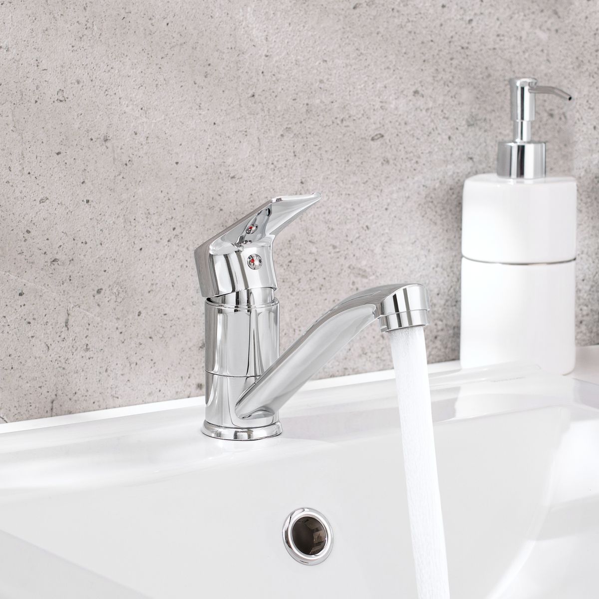 Классический однорычажный смеситель для кухни с коротким изливом, дополненный оригинальным оформлением ручки смесителя, станет функциональным и привлекательным дополнением кухни.
