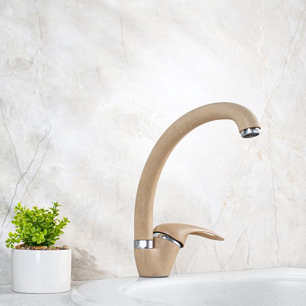 Изящный и функциональный однорычажный смеситель для кухни с высоким поворотным изливом отлично подойдет для любой кухни, а благодаря обширной цветовой гамме идеально впишется в интерьер.