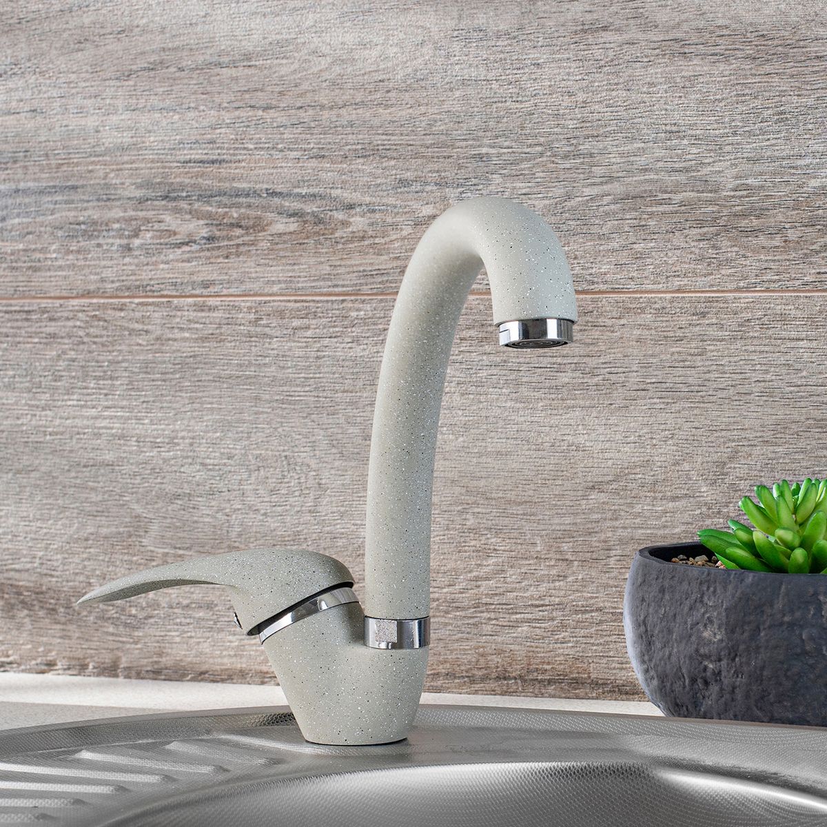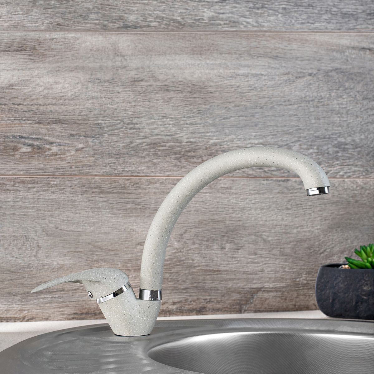 Изящный и функциональный однорычажный смеситель для кухни с высоким поворотным изливом отлично подойдет для любой кухни, а благодаря обширной цветовой гамме идеально впишется в интерьер.