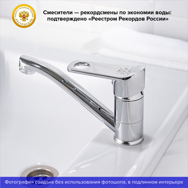 Классическая модель однорычажного смесителя украсит небольшую кухню. Рычаг удобен для захвата одной рукой и поворачивается плавно, что позволяет максимально точно настроить температуру и напор струи. Стандартный поворотный излив предназначен для оборудования негабаритной раковины.