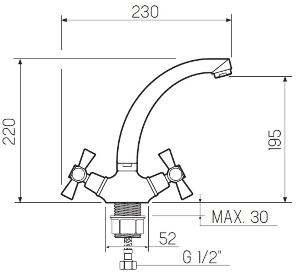 • Высота смесителя: