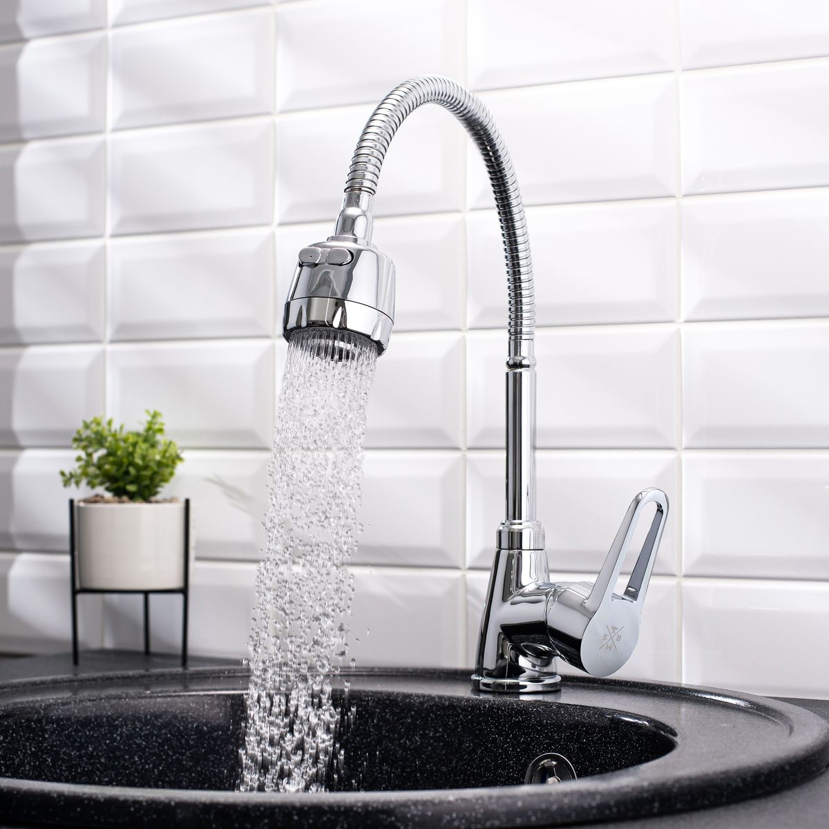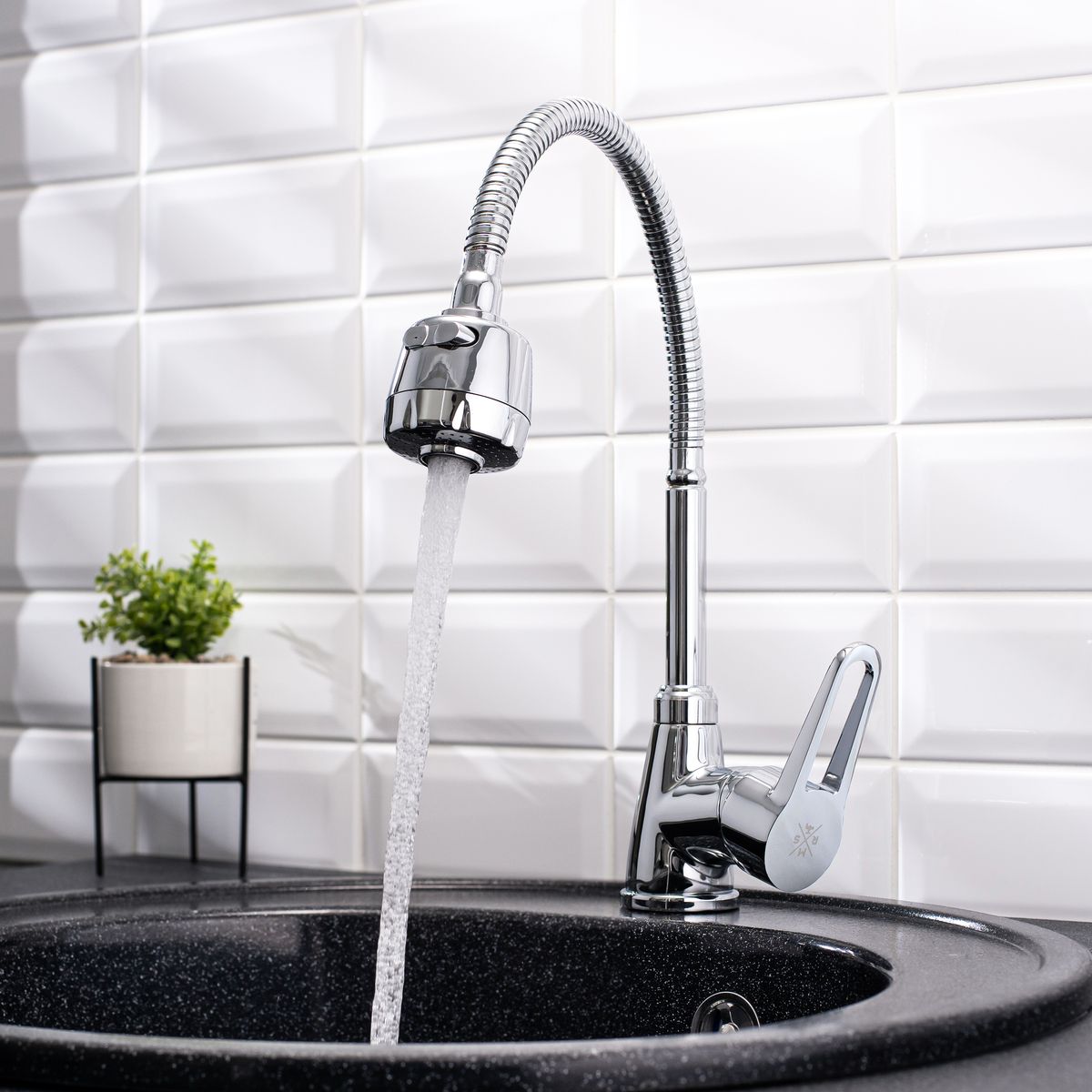 При производстве смесителей ТМ РМС используются только высококачественные материалы. Все модели проходят процесс гальванизации, что придает им большую износостойкость и улучшает антикоррозийные свойства. Установка смесителя крайне проста. Смесители РМС это сертифицированный продукт с 5-летней гарантией. Гибкая подводка идет в комплекте.Смеситель для кухни с высоким