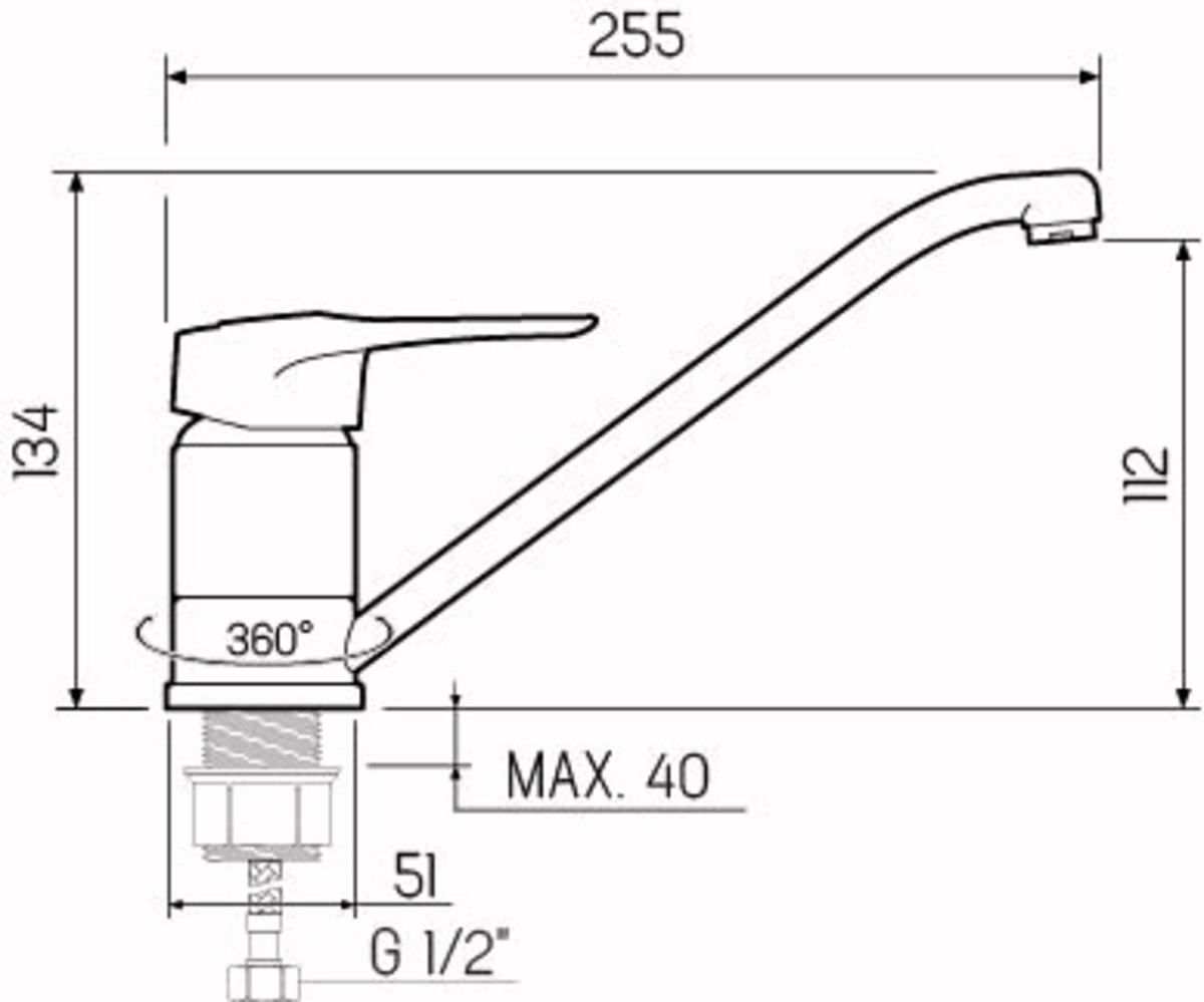 Смеситель для кухни с длинным поворотным изливом
