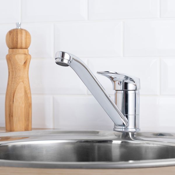 Однорычажный смеситель для кухни с длинным поворотным изливом имеет четкие, плавные линии, удобен в использовании и станет стильным элементом интерьера.