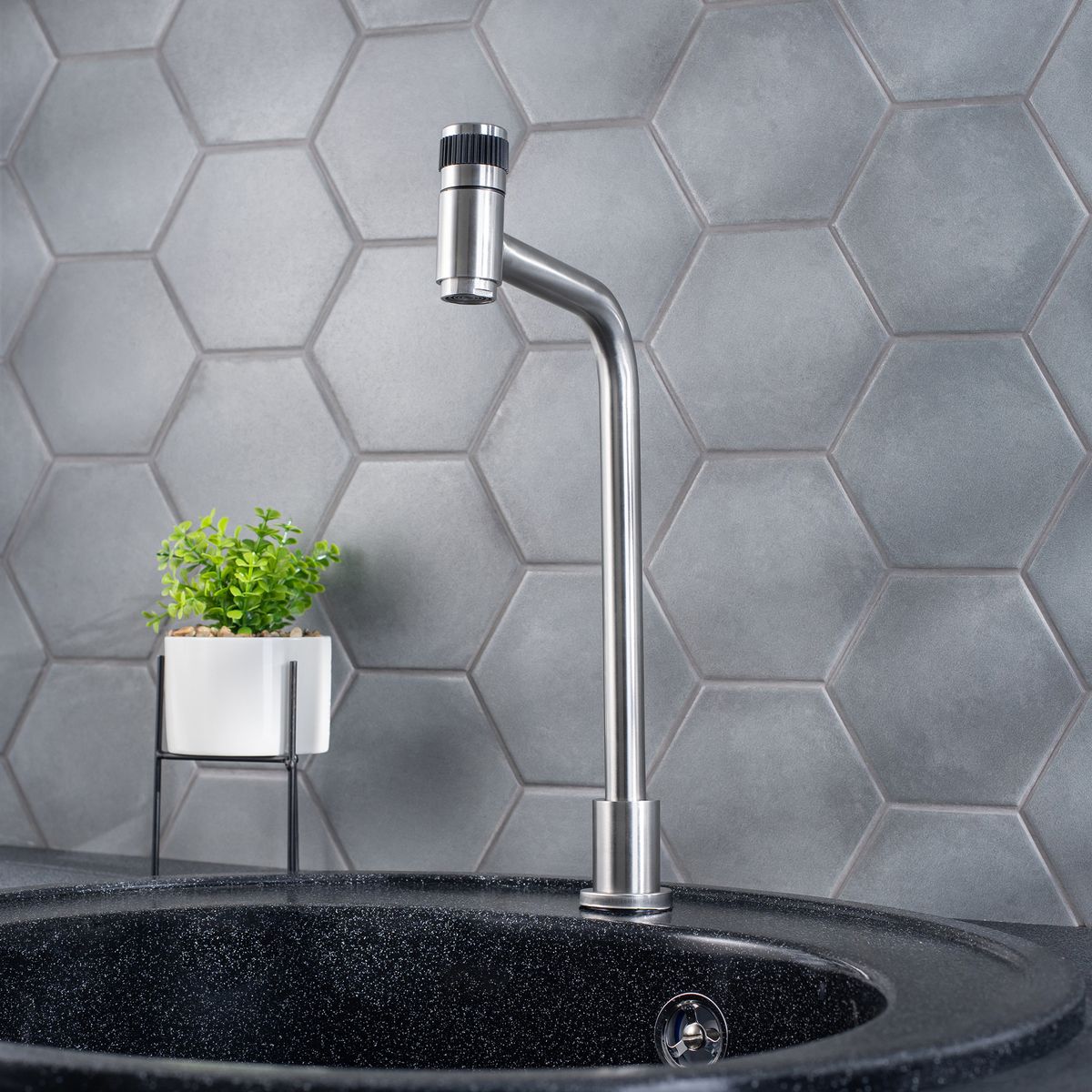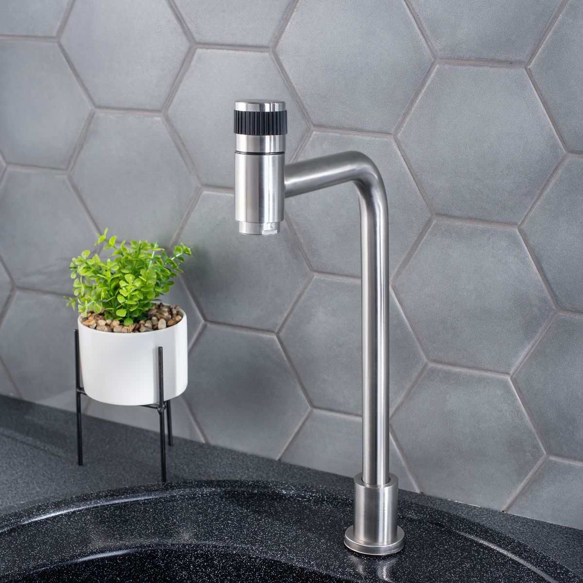 Кран для одной воды из нержавеющей стали с переключателем воды на изливе.
