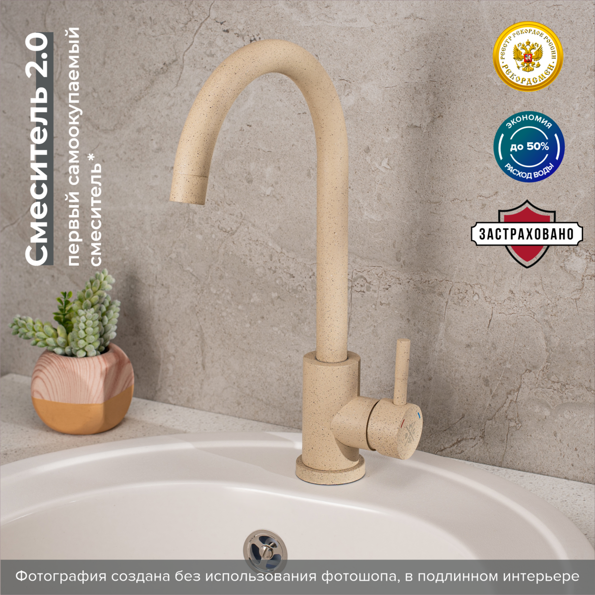 Смеситель для кухни РМС SUS124BGK-017F бежевый купить