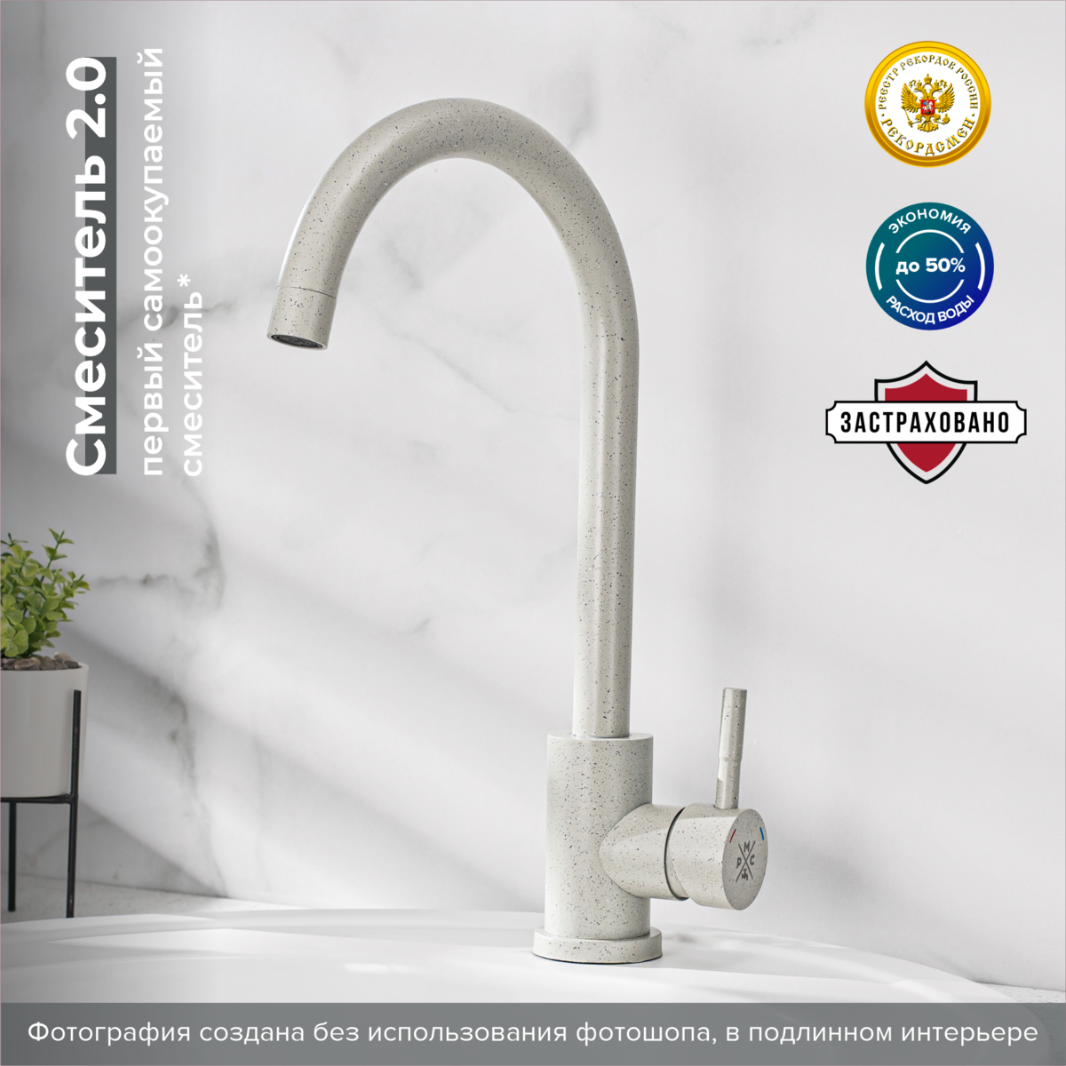 Смеситель для кухни с высоким поворотным изливом