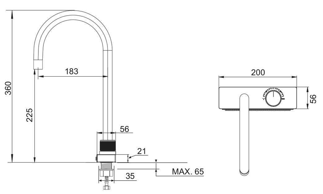 Смеситель для кухни с высоким поворотным изливом.