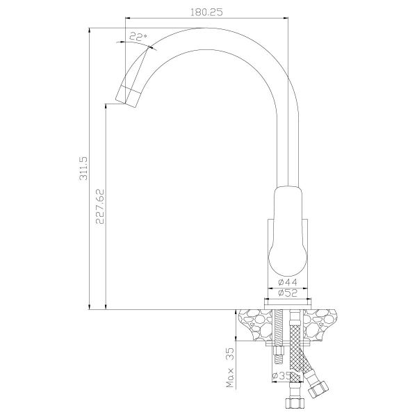 Смеситель для кухни Rossinka RS27-23 одноручный с высоким поворотным изливом.Согласно заключению ОАО НИИ Сантехники, смесители Россинка могут использоваться в жилых и нежилых помещениях и учреждениях разного профиля и соответствуют Российским условиям эксплуатации. Смеситель послужит прекрасным дополнением к интерьеру кухни как в современном, так и в классическом стиле.Материал корпуса - высококачественная промышленная латунь с пониженным содержанием свинца.