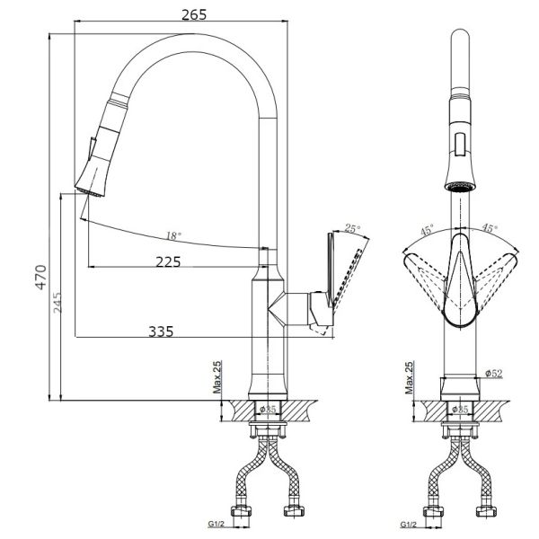 Смеситель для кухни RUSH арт. DN0335-23 с поворотным изливом и вытяжной лейкой из коллекции ... Подробнее