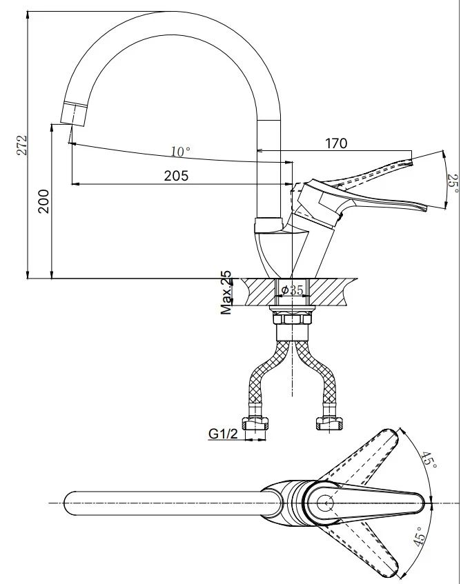 • Высота смесителя:
