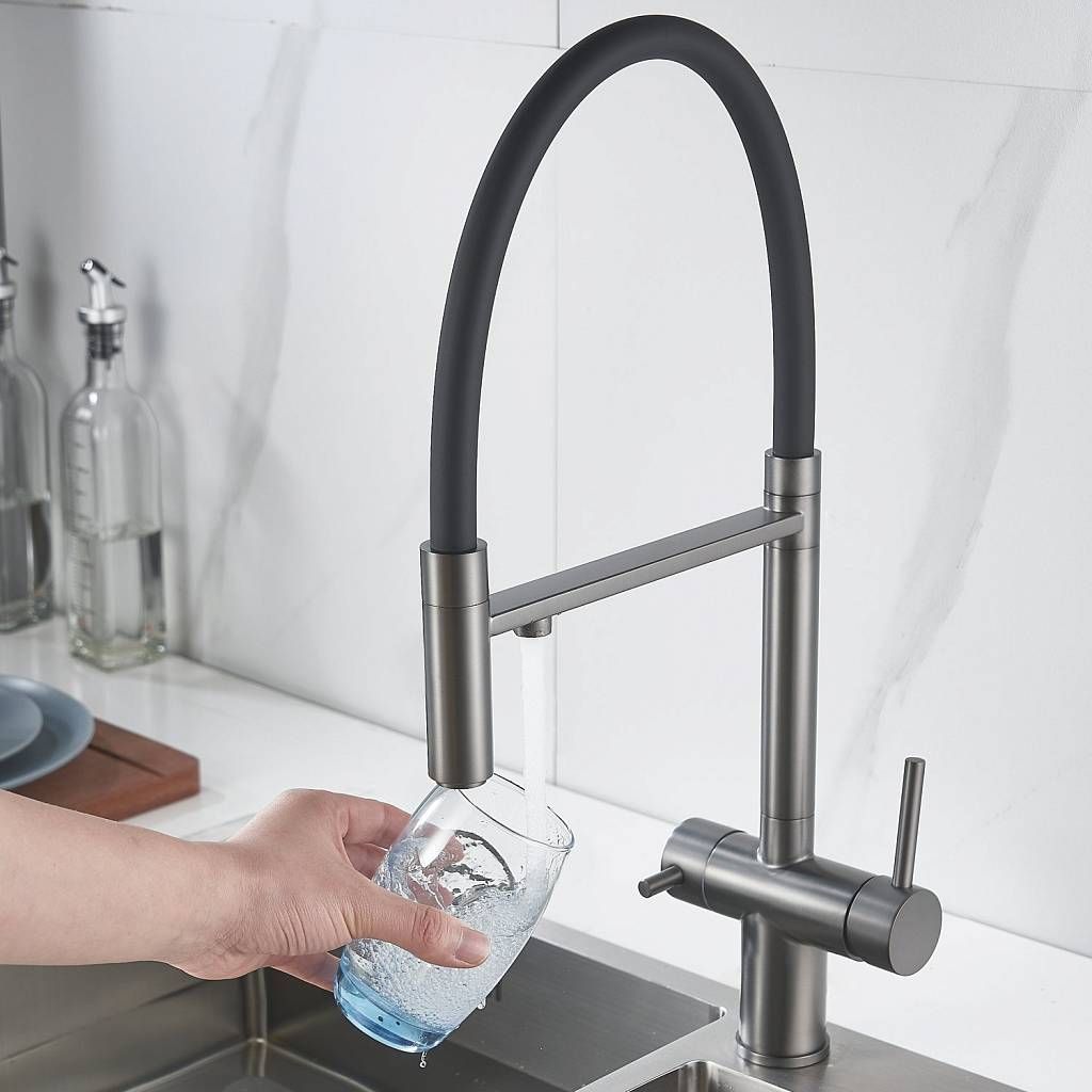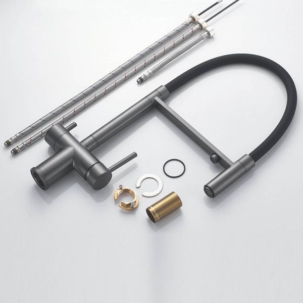 Смеситель для кухни с гибким изливом и подключением фильтра Maretti Calabria CA31RGF11, оружейная сталь купить