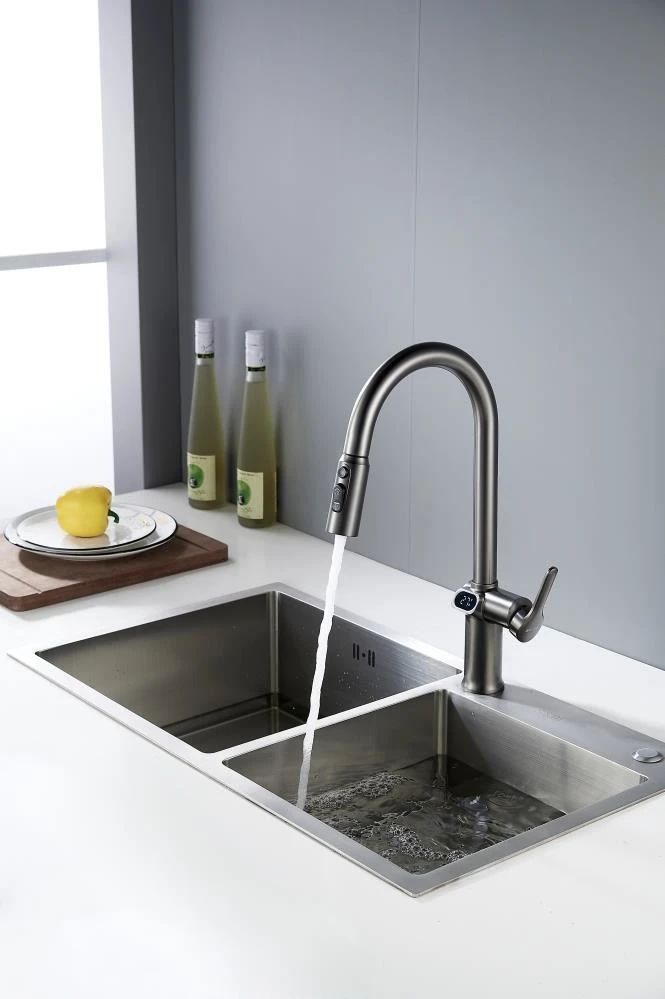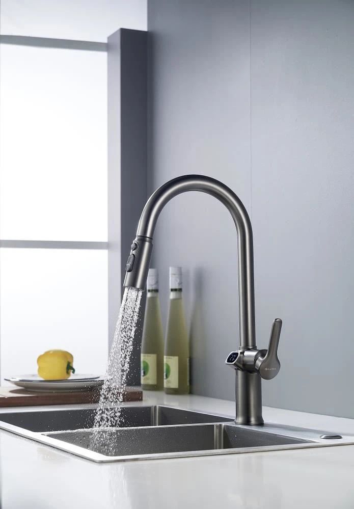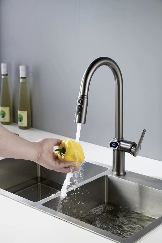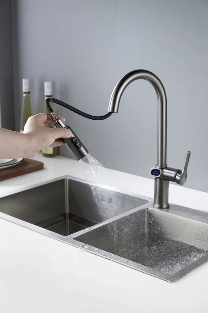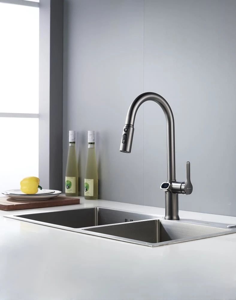 Смеситель для кухни с индикатором температуры Knotlor KN-100/GM, вороненая сталь
